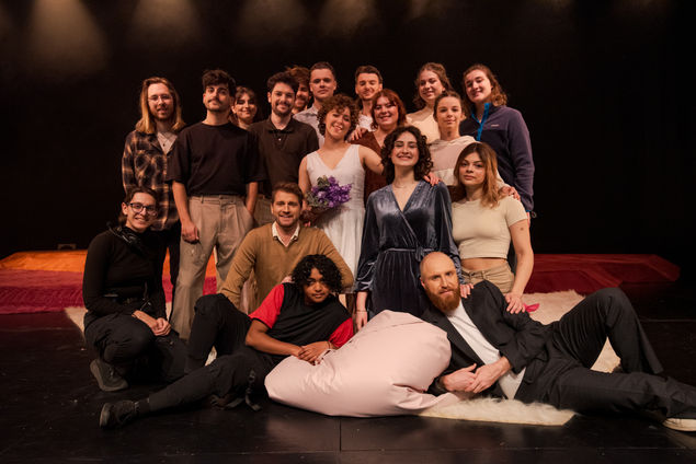 Révolte-toi, elle a dit, révolte-toi encore est cette comédie noire invitant les artistes qui la monte à débattre, à d’abord découvrir ses systèmes, et ensuite à faire de choix, des liens, et à refuser parfois. J’ai eu la chance d’aborder cette matière avec une cohorte d’artistes formidables, les Adelphes. J’ai trouvé en elleux des complices, des chercheur.ses, des interprètes avides de sens, ravi.es par les défis. J’admire leur bravoure et les remercie de m’avoir suivi et questionné par moment. Le temps qui file, les journées longues, les partitions improbables, les grèves, aucun écueil n’est à leur épreuve. On dit souvent que les premières fois sont les plus importantes, je les remercie pour celle-ci.